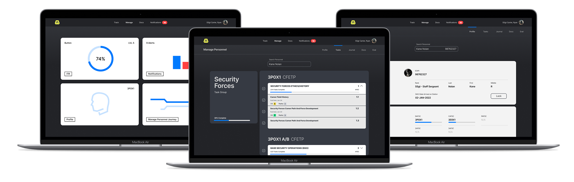 Web application for an Air Force career training tracker.