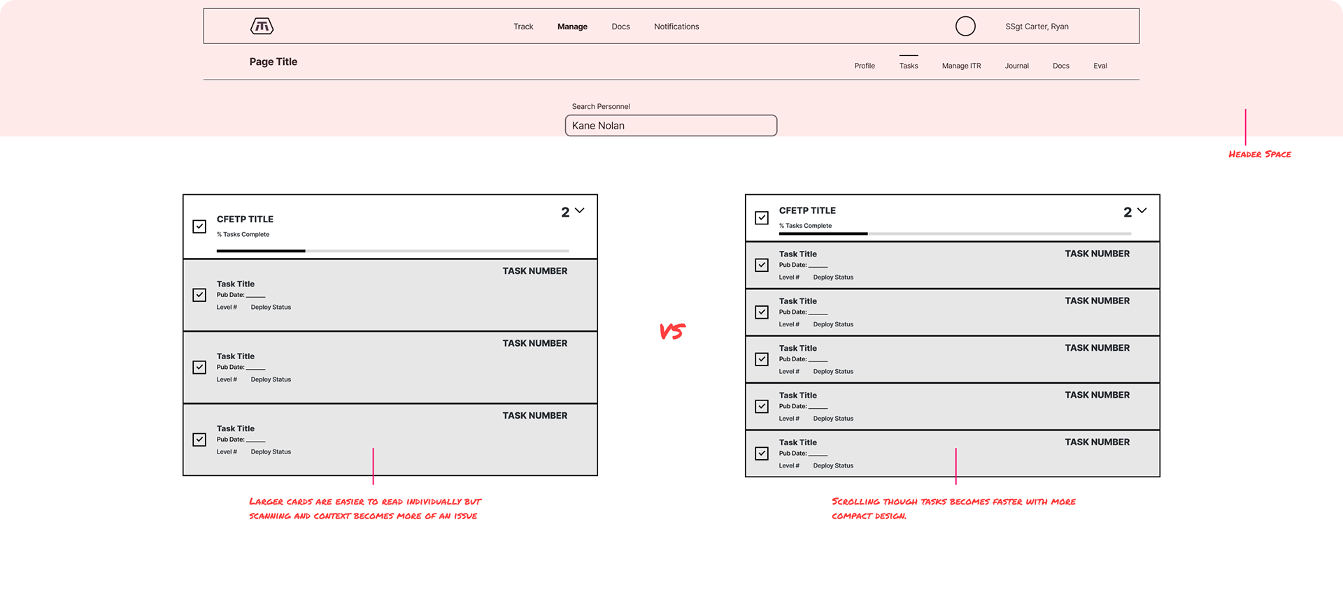Throughout the wireframe and design process, I would get feedback from the subject matter experts who would ask for adjustments via no-code, interactive prototypes, or green-light our developers to build and push to a staging environment. I would sit in as our QA team user tested each feature by allowing various groups of airmen to interact with staging. They would be asked to accomplish certain tasks and provide feedback. From this I was able to confirm usability of the design, adjusting as necessary. I consistently gathered feedback throughout every step of the project, including high fidelity designs to ensure I was on track and meeting the established goals.