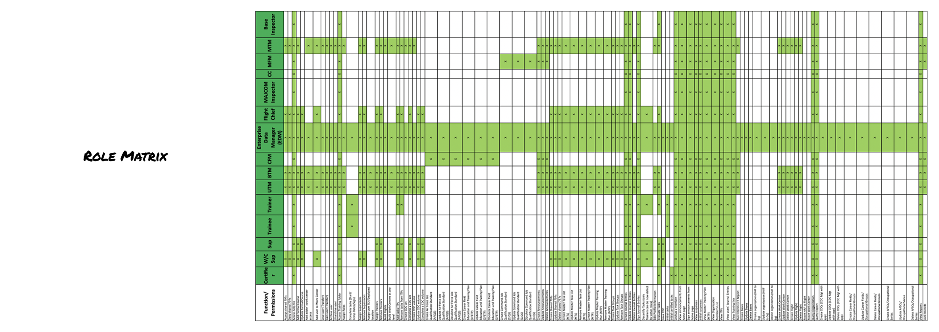 The Roles Matrix was helpful in defining permissions for each role.