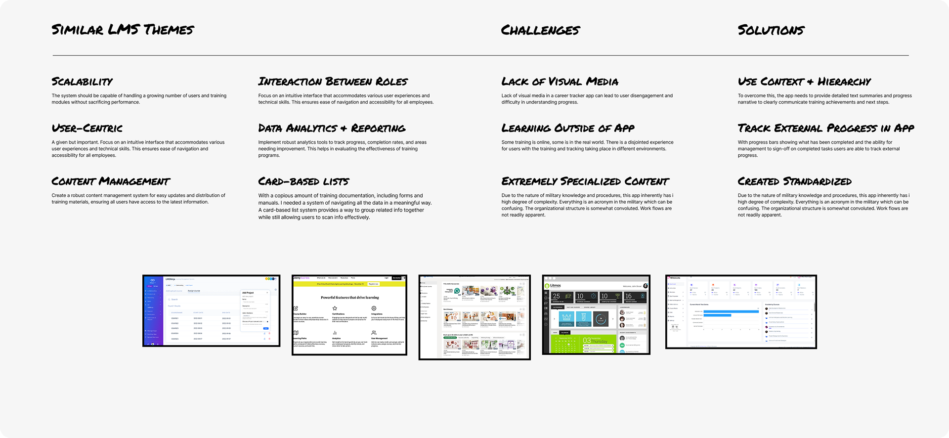 Performed a competitive analysis of modern learning management systems (LMS) to gather insights and best practices for redesign.